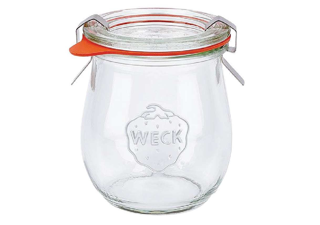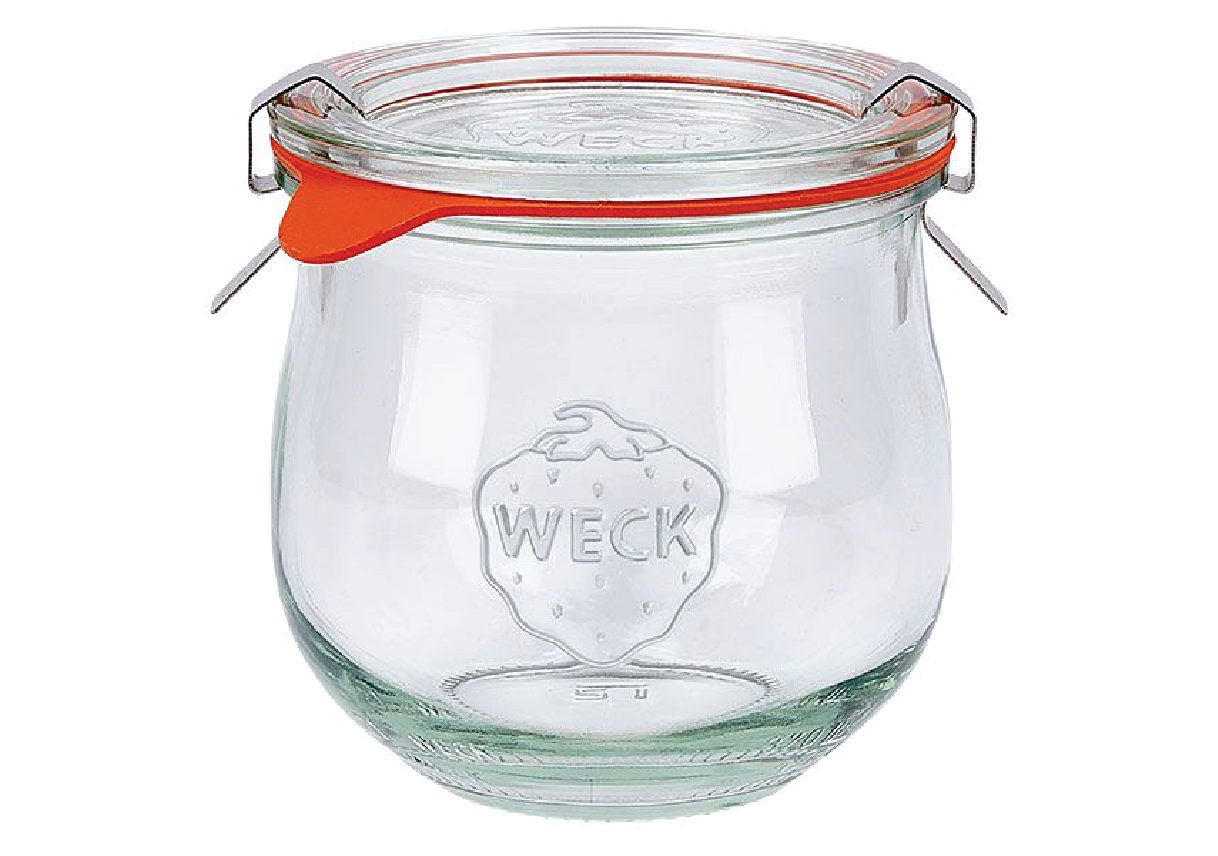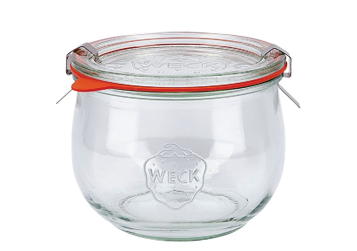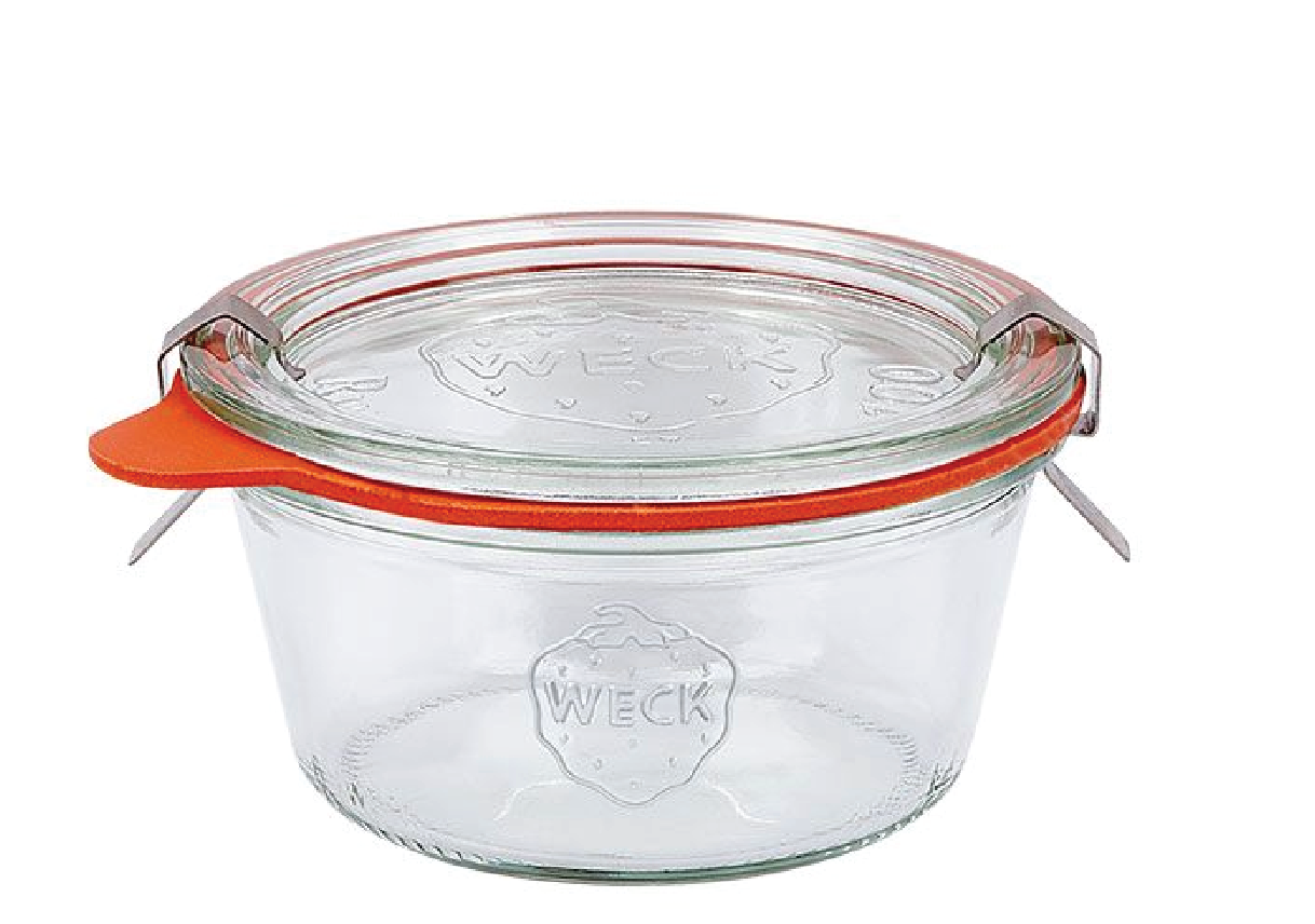 Weck Bowl 450mL (15. 2 fl oz. ). Use Size Extra-Large (120) Lids. Includes 1 Jar, Glass Lid, Rubber Ring and 2 Clamps