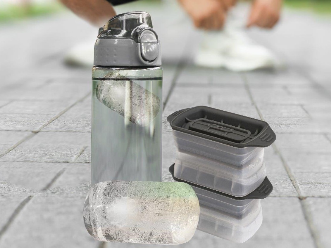 Nothing beats having cold, refreshing water after a workout, outdoor activity, or another outing. This innovative Bottle Ice Tray creates 5 cylindrical 1.5oz. ice sticks to fit into narrow-neck reusable and store-bought bottle openings, so drinks stay colder longer. The lid eliminates odors and the base keeps ice level to prevent spills in the freezer. Flexible silicone allows ice to pop out easily. Fits in most narrow-neck reusable and store-bought bottles. Stacks neatly to conserve space. .