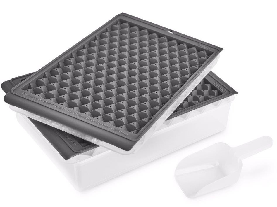 Perfect for the Nugget Ice Lovers, make 200 ice cubes at a time. Make and store mini ice simultaneously with the Twist and Release Mini Ice Mold Set! The flexible silicone tray easily releases 200 mini ice cubes with a simple twist. Set includes tray, lid, scoop and storage bin to keep ice fresh and clean. .