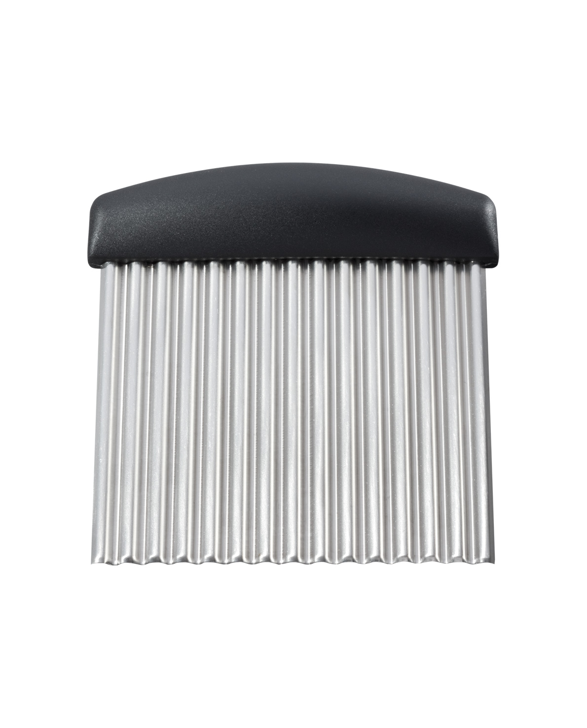 The Triangle Crinkle Cutter creates wavy cut slices, sticks and cubes for salads, fruit platters, for home-made wavy fries or for attractive butter presentation Due to its thin material and the ergonomic working direction it leaves very defined shapes and requires little force. Safe and easy to use it is also fun for children. Dishwasher-safe. Made in Solingen/Germany. Packaging: Box.