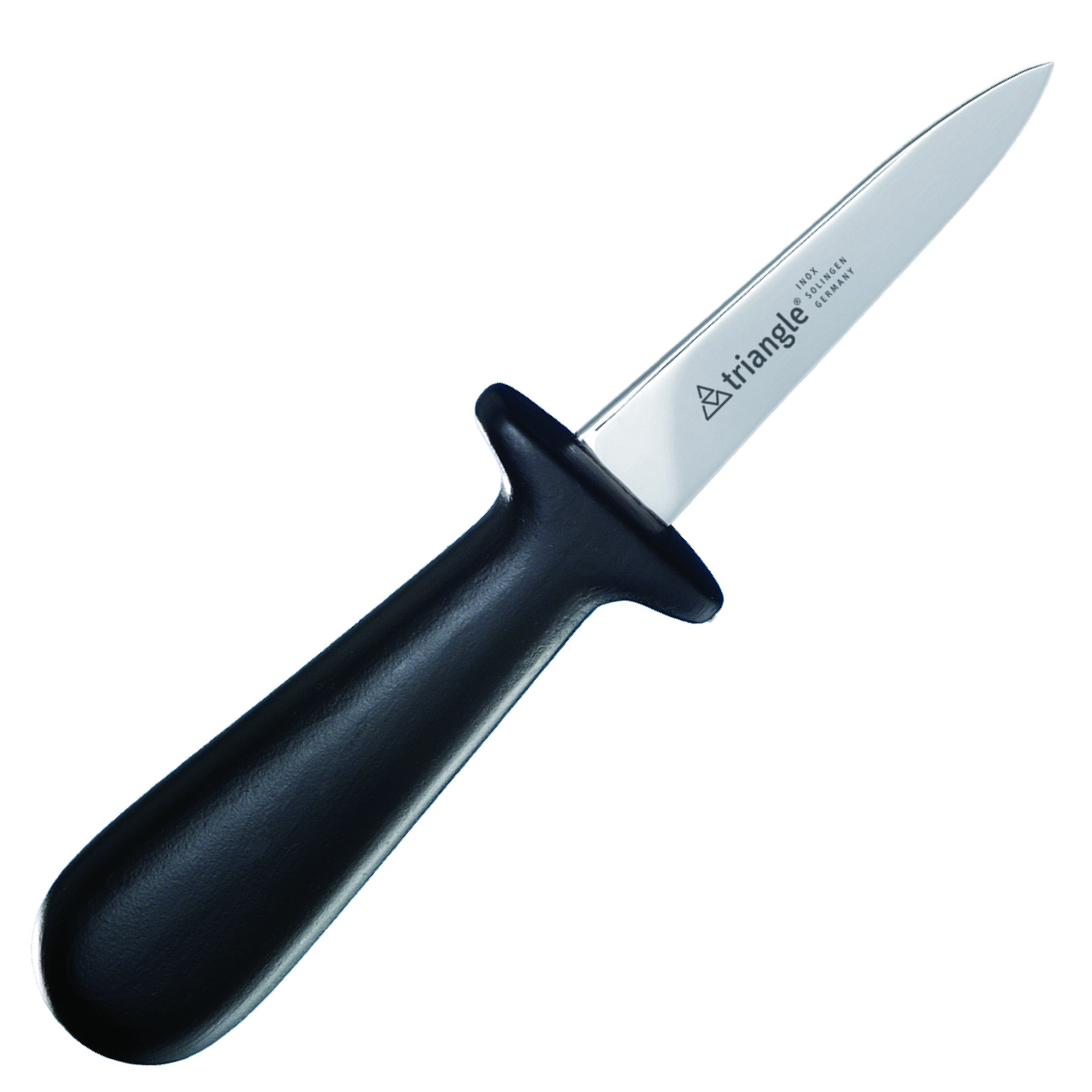 Stainless steel oyster opener with handguard. The knife is hardened and sharpened on both sides. Dishwasher-safe. Made in Solingen/Germany. Packaging: Hangtag.