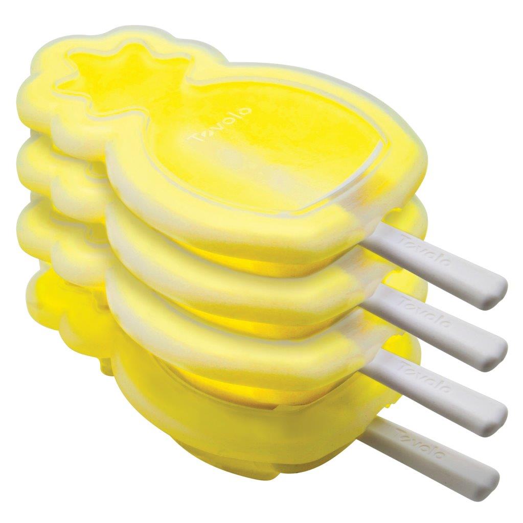 Cool off all year-round, free from mess with the Stackable Pineapple Molds from Tovolo. Arriving in a set of four detailed shapes, the innovative stackable design saves storage space in the freezer. The flexible molds are crafted from BPA-free, food-safe silicone, and makes removing popsicles a cinch. Simply blend up your ingredients, pour into the molds, freeze, and enjoy the perfectly formed frozen Pineapples! For the best results, run the molds under warm water to release the silicone before removal. The integrated fill line and fully enclosed lid promote mess-free popsicle creation with no leaks in the freezer. When the time comes to enjoy these homemade popsicles (or frozen adult beverages,) the long handles with built-in drip guards ensure minimal spills. The silicone sleeves create detailed pops using your favorite ingredients, providing a tight seal that results in mess-free frozen treats!