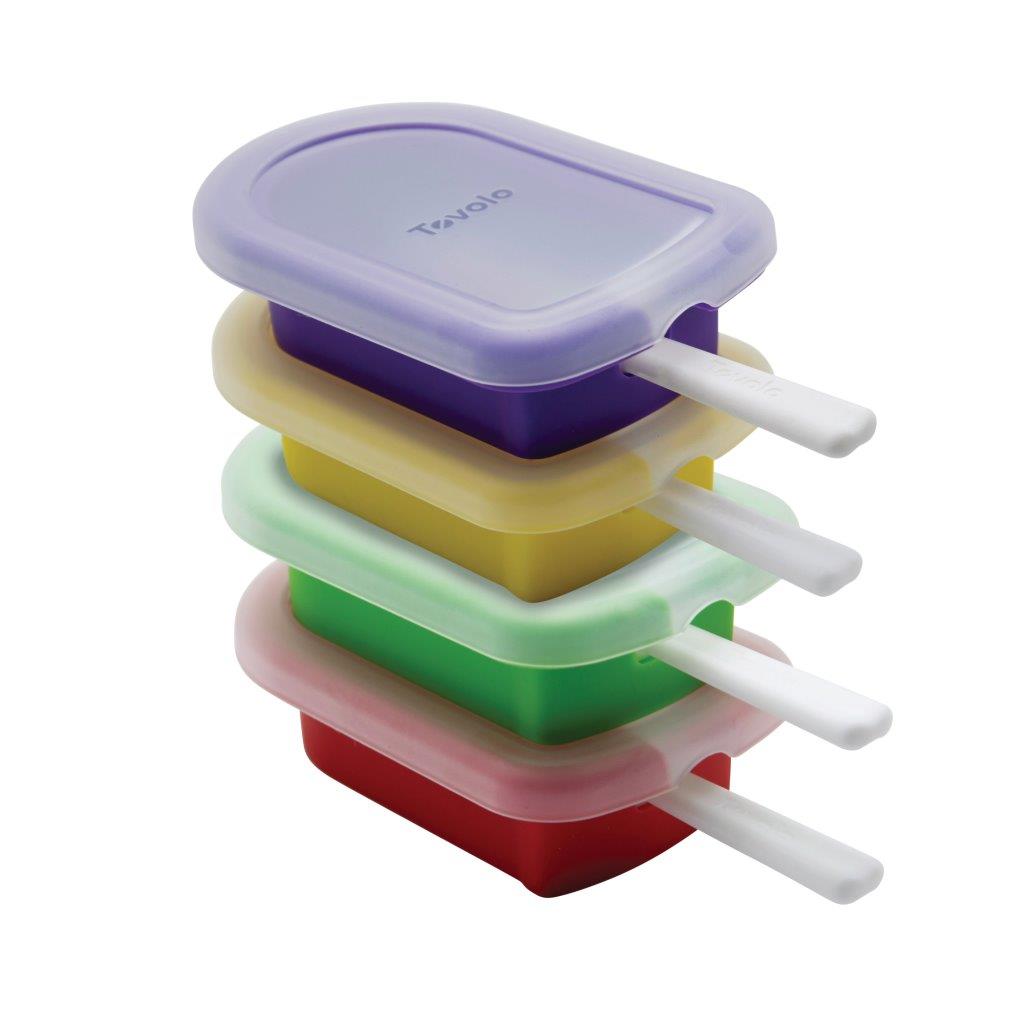 Cool off all year round, free from mess with the Stackable Truck Molds from Tovolo. Arriving in a set of four detailed shapes, the innovative stackable design saves storage space in the freezer. The flexible molds are crafted from BPA-free, food-safe silicone, and make removing popsicles a cinch. Simply blend up your ingredients, pour into the molds, freeze, and enjoy the perfectly formed frozen Trucks! For the best results, run the molds under warm water to release the silicone before removal. The integrated fill line and fully enclosed lid promote mess-free popsicle creation with no leaks in the freezer. When the time comes to enjoy these homemade popsicles (or frozen adult beverages,) the long handles with built-in drip guards ensure minimal spills. The silicone sleeves create detailed pops using your favorite ingredients, providing a tight seal that results in mess-free frozen treats!