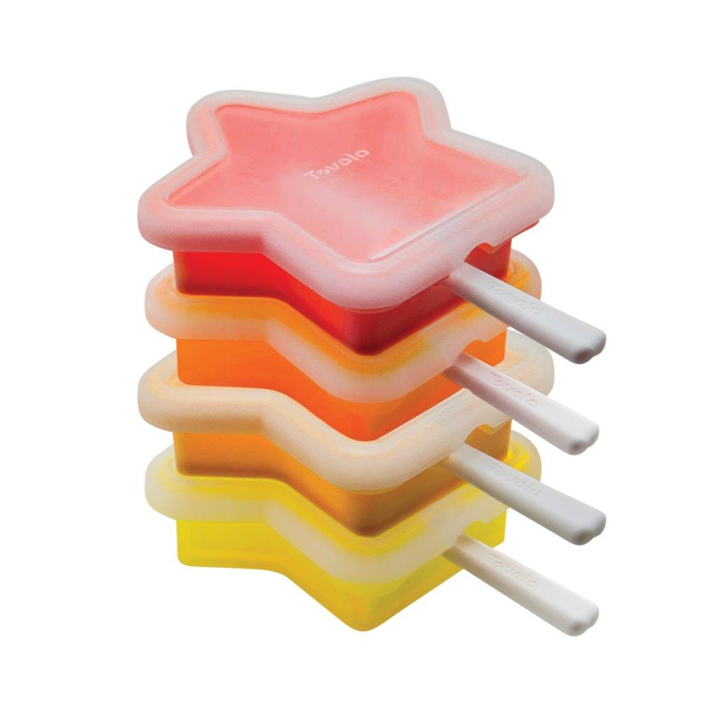 Cool off all year-round, free from mess with the Stackable Star Molds from Tovolo. Arriving in a set of four detailed shapes, the innovative stackable design saves storage space in the freezer. The flexible molds are crafted from BPA-free, food-safe silicone, and makes removing popsicles a cinch. Simply blend up your ingredients, pour into the molds, freeze, and enjoy the perfectly formed frozen Stars! For the best results, run the molds under warm water to release the silicone before removal. The integrated fill line and fully enclosed lid promote mess-free popsicle creation with no leaks in the freezer. When the time comes to enjoy these homemade popsicles (or frozen adult beverages,) the long handles with built-in drip guards ensure minimal spills. The silicone sleeves create detailed pops using your favorite ingredients, providing a tight seal that results in mess-free frozen treats!