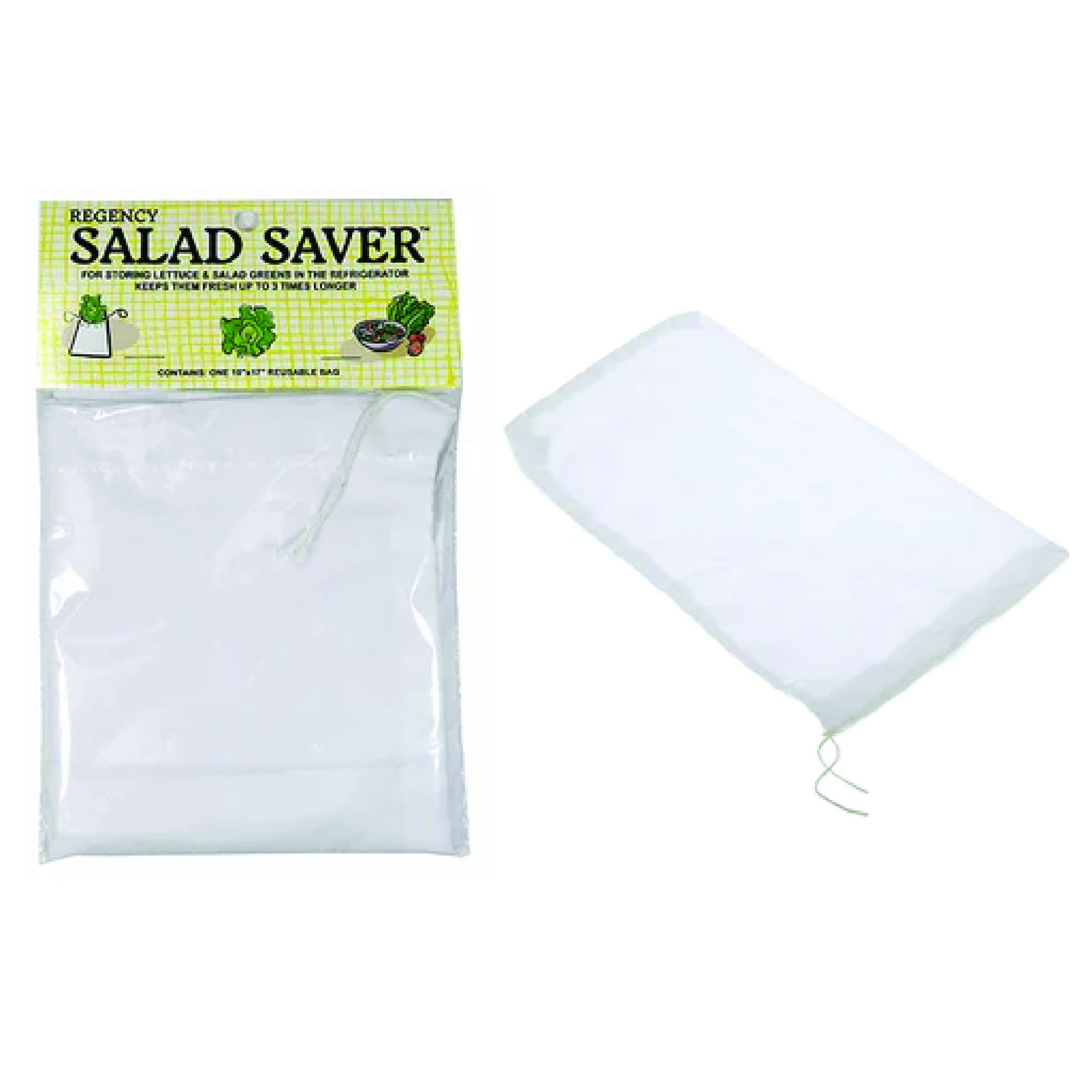 Extend the life of your greens with this reusable 10x17" salad saver bag. Keeps salads and produce crisp and fresh longer.