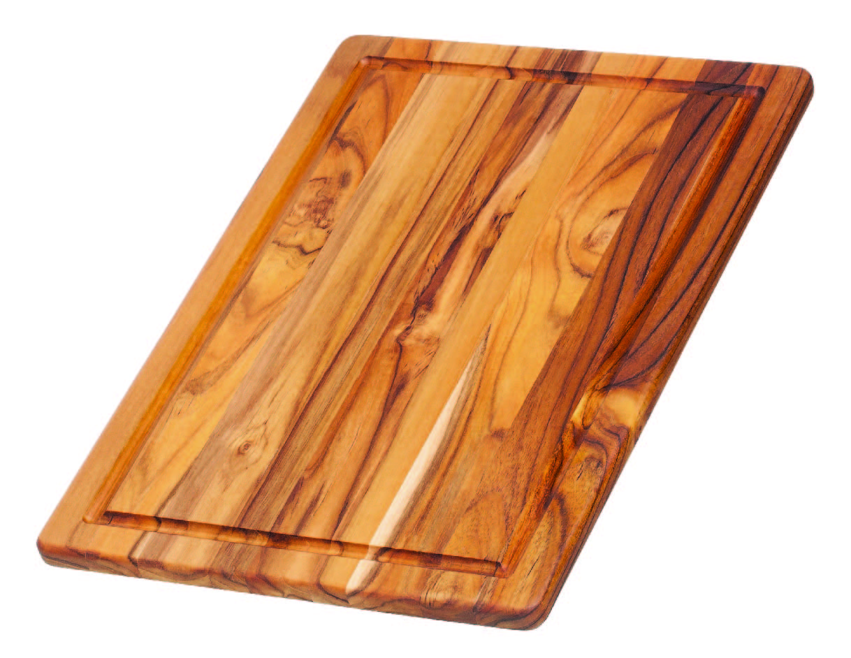 ESSENTIAL COLLECTION - Essential Cutting Board W/Juie Canal (L). A cutting board is the starting point to any food celebration. As you chop all your fresh ingredients to master the perfect seasoning, remember this is an experience from beginning to end. Rectangle, Edge Grain, Juice Canal on One Side, Reversible, Master Case of 4. 100% Sustainable teakwood. Handwash only, do not soak. FSC Certified Product. Teak is a tropical wood with a high oil content that acts as a moisture-resistant barrier. Its medium hardness provides a luxurious cutting experience and keeps your knives sharp. For mainteining use just a few drops of mineral oil, your boards will look like new again. Our zero-waste production process helps to minimize our environmental impact. All our teakwood comes from sustainable forests. FSC-certified, which means every purchase helps preserve nature, support sustainable forestry, protect biodiversity,