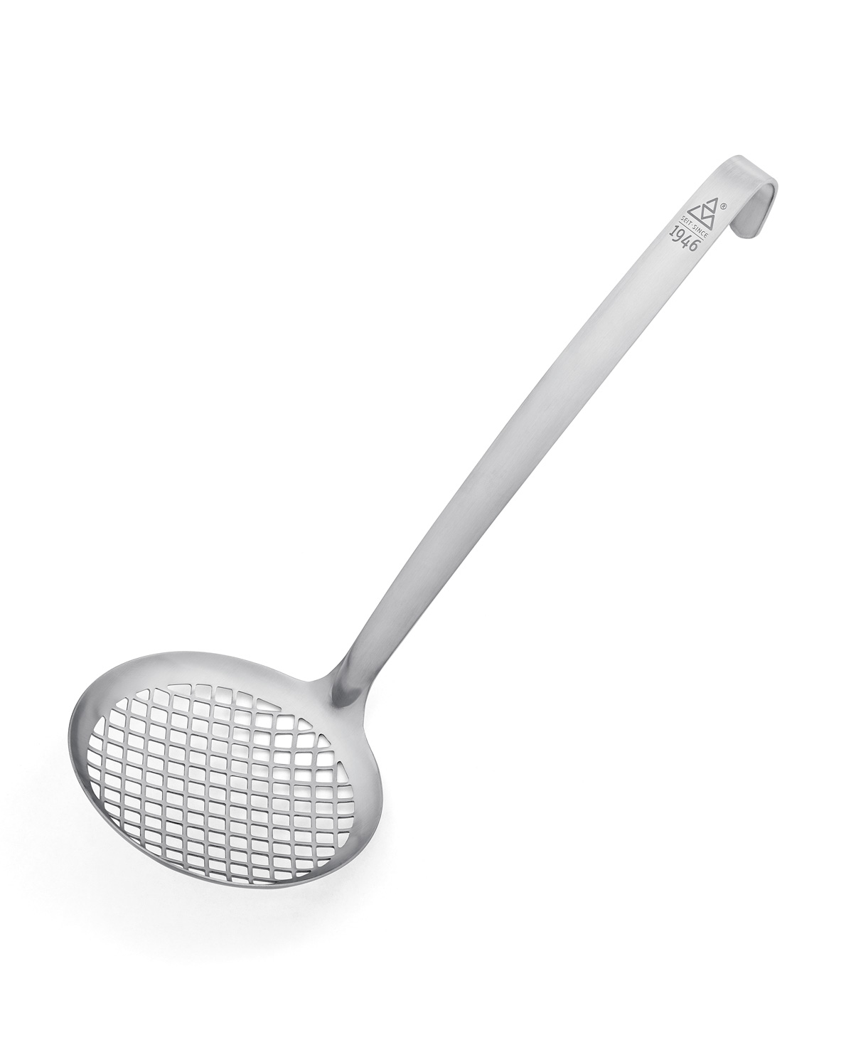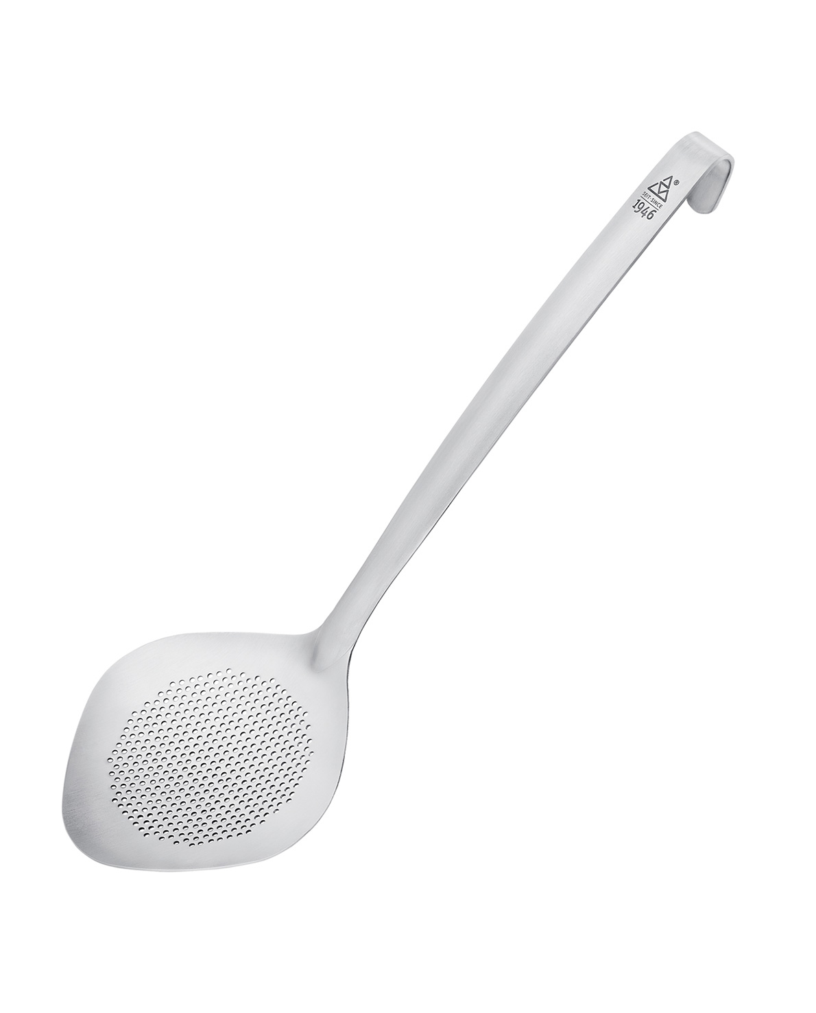 The 1946 range includes kitchen utensils for every day, all redesigned and unique in their handling. Made of brushed 18/10 stainless steel and with a solid material thickness, they are indestructible and wIt'stand the rough everyday use in the restaurant kitchen as confidently as they impress at the buffet and at the table by their design. All parts of the series were put to the test and optimized in their function. Soup and sauce ladle pour drip-free, turner and spoon are strong and ergonomic and the skimmer provides large, square holes for perfect and clog-free drainage of liquids. Another special are the two flexible stainless steel and nylon turners. The heads are very thin, but nevertheless strong and highly flexible. So they slide easily under sensitive food such as fried eggs, scallops or fine pastries and lift and turn without risk of breakage. Packaging: Card.
