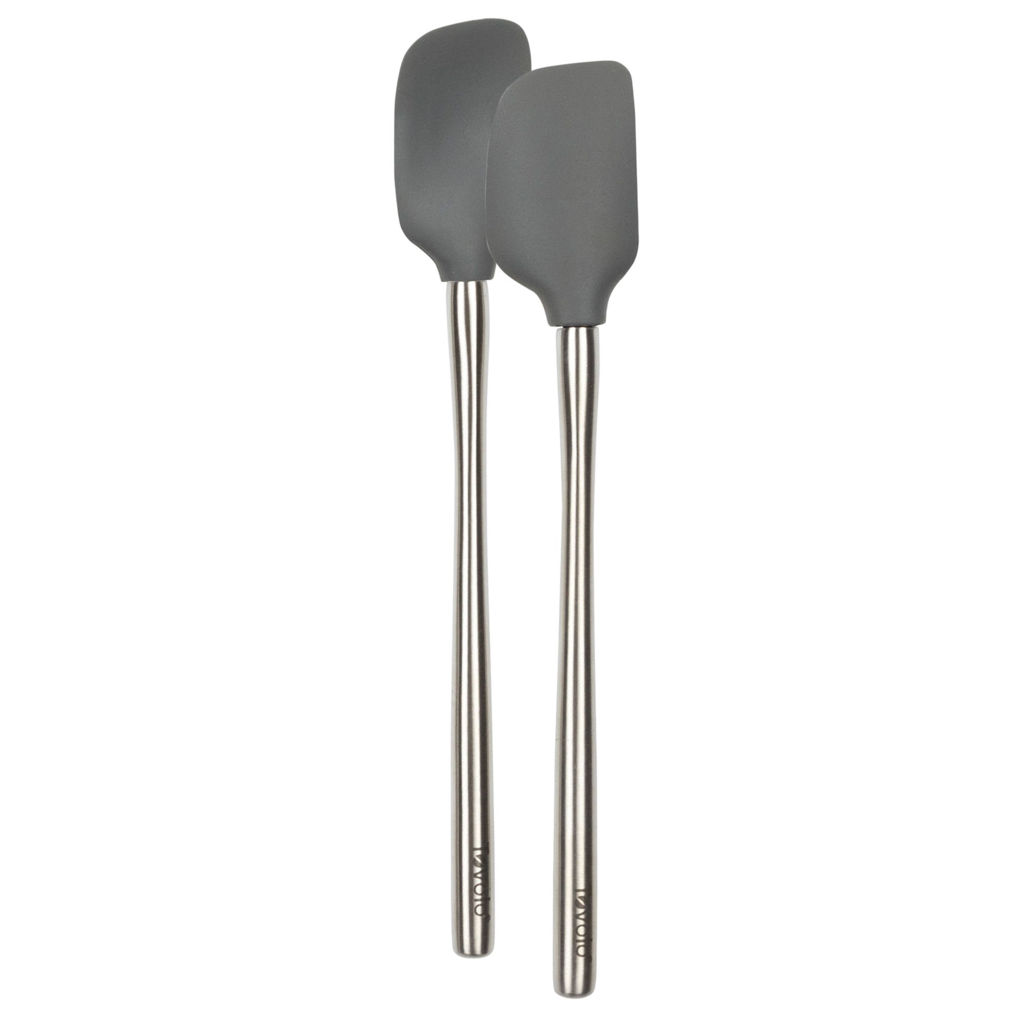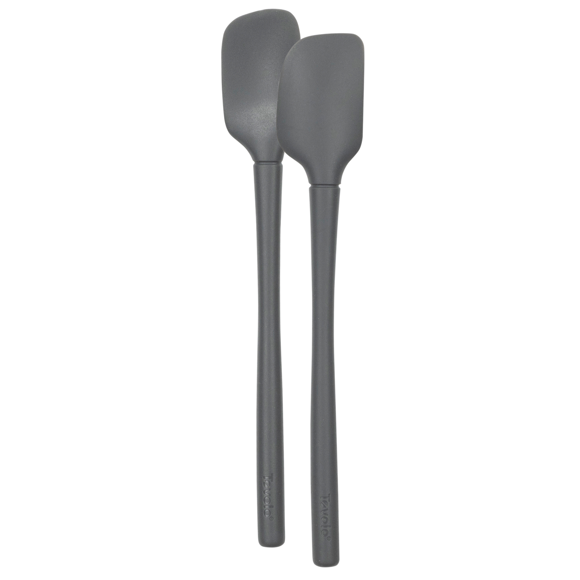 Flex-core All Silicone Mini Spatula & Spoonula S/2 - Charcoal. Perfect combination and size for all your small jobs around the kitchen. Spatula is great for spreading. Spoonula is perfect for scooping. Long, narrow handle fits perfectly into small spaces. Nylon Core for added rigidity. Ergonomically shaped handle for a comfortable grip. Made of BPA-free Silicone and nylon.