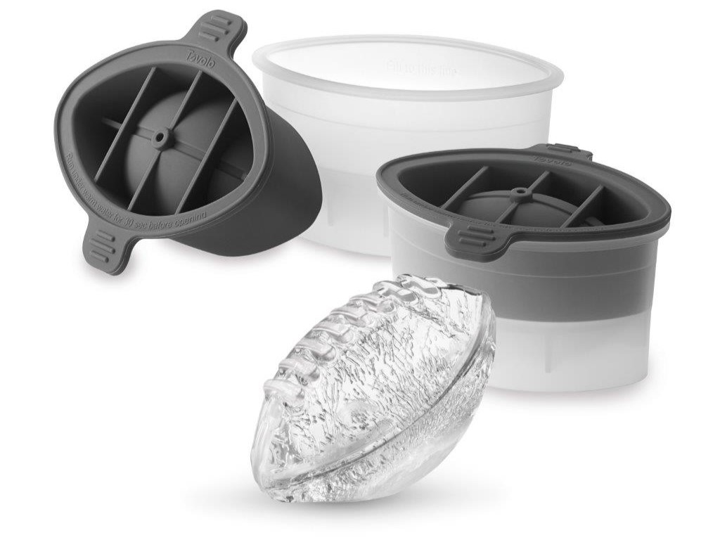 Upgrade tailgates and watch parties with the sports-themed Tovolo Football Ice Molds! Using our classic sphere ice molds as inspiration, we’ve created a slow-melting accessory for your favorite tailgating drink. The easy-to-use molds feature a stable nylon base and a leak-free silicone lid. Simply fill the mold with water, insert the silicone lid gently, and freeze. Once frozen, the silicone lid glides off for easy ice removal. Relax, throw on your jersey, and enjoy a cold beverage thanks to Tovolo Sports Ice Molds. Create sports-shaped ice for a distinctive, unique look for your favorite cocktailsIce chills drinks quickly and melts slowly for a long-lasting, refreshing drinkTight-fitting lids seal to prevent freezer spills and allow stackingFlexible silicone lids come off smoothly so ice comes out of the mold with easeDurable, food-grade molds are BPA-free and dishwasher-safe.