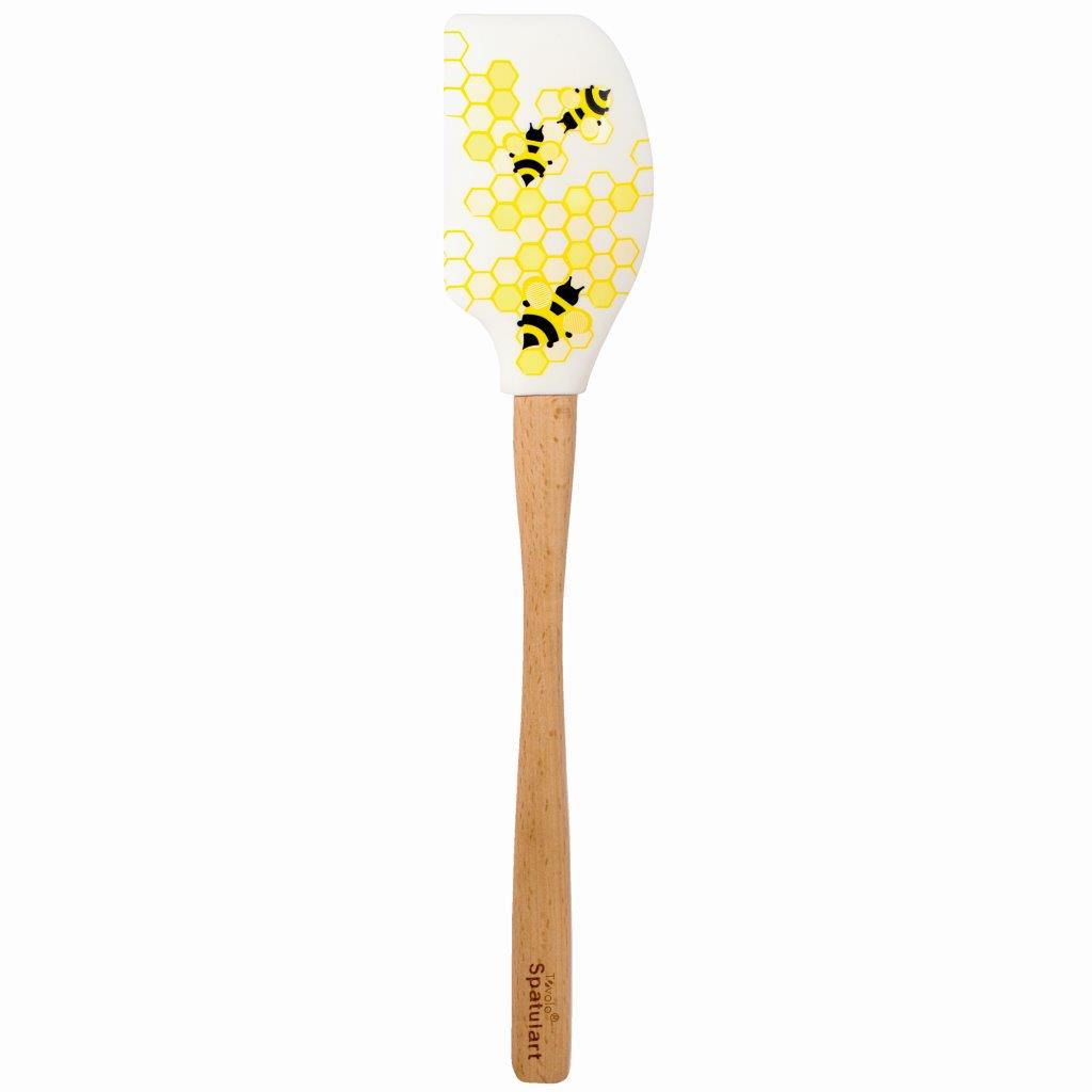Fun designs add joy to every meal, adding a dash of amusement and cheer to your favorite dishes. The design is printed on both sides of the spatula and with silicone ink, ensuring long-lasting kitchen artwork. Silicone is stain-resistant and fade-resistant, ensuring the spatula will look as good as when you bought it for years to come. Removeable BPA-free silicone is scratch-resistant, stain-resistant, and food-safe for the best possible kitchen tool. The flexible, curved edge provide just enough give to scrape the edges of the bowl clean while the wooden rod in the center creates rigidity for thick batters and doughs. The soft-touch silicone will not scratch pans, making it a gentle and safe choice for nonstick and cast iron cookware. Silicone is heat resistant up to 600 degrees Fahrenheit. Wooden handle adds an air of traditionalism to the modern silicone spatula. The ergonomic handle is designed to fit comfortably in hand as you mix, fold, scrape, spread, flip, and serve. The wood is tough, durable, and thick enough to tackle your toughest kitchen jobs. Made of BPA-free silicone and wood.