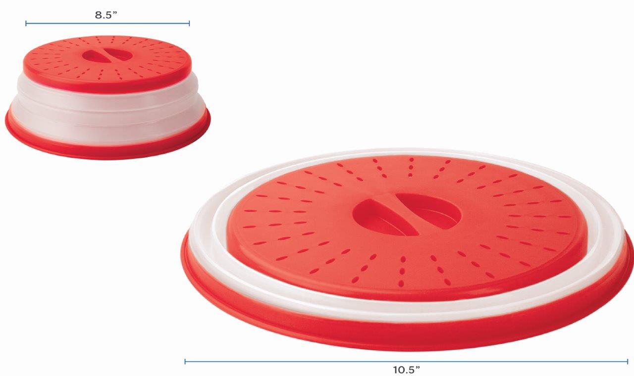The Tovolo Collapsible Microwave Cover helps keep food moist and keeps the inside of your microwave clean by preventing splatter. The vented holes allow steam to release evenly, preventing condensation and steam buildup, which ensures your meal doesn’t overcook or dry out. This tool is designed to fit most small-size plates and bowls and is collapsible for compact storage. It's an essential kitchen tool in keeping your meal or food prep clean in an economically friendly fashion. This microwave cover is dishwasher safe, making for easy cleanup and less dirty dish build-up. With multiple uses, this collapsible cover can be used as a makeshift colander, straining water to clean fresh produce, berries, or vegetables. Made from high heat-resistant plastic, this kitchen gadget is a great way to minimize microwave messes and ensure an even cook every time.