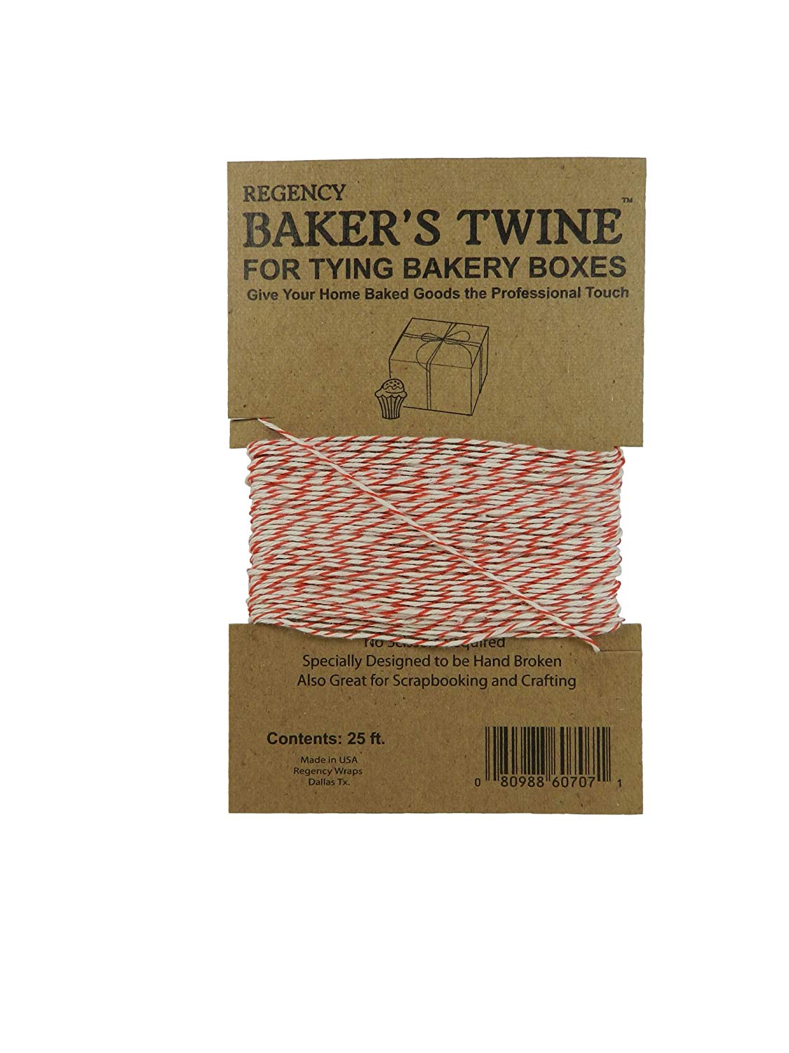 Add a festive touch to your baked goods and gifts with this 25-foot spool of red-and-white baker's twine. Perfect for tying packages or decorations.