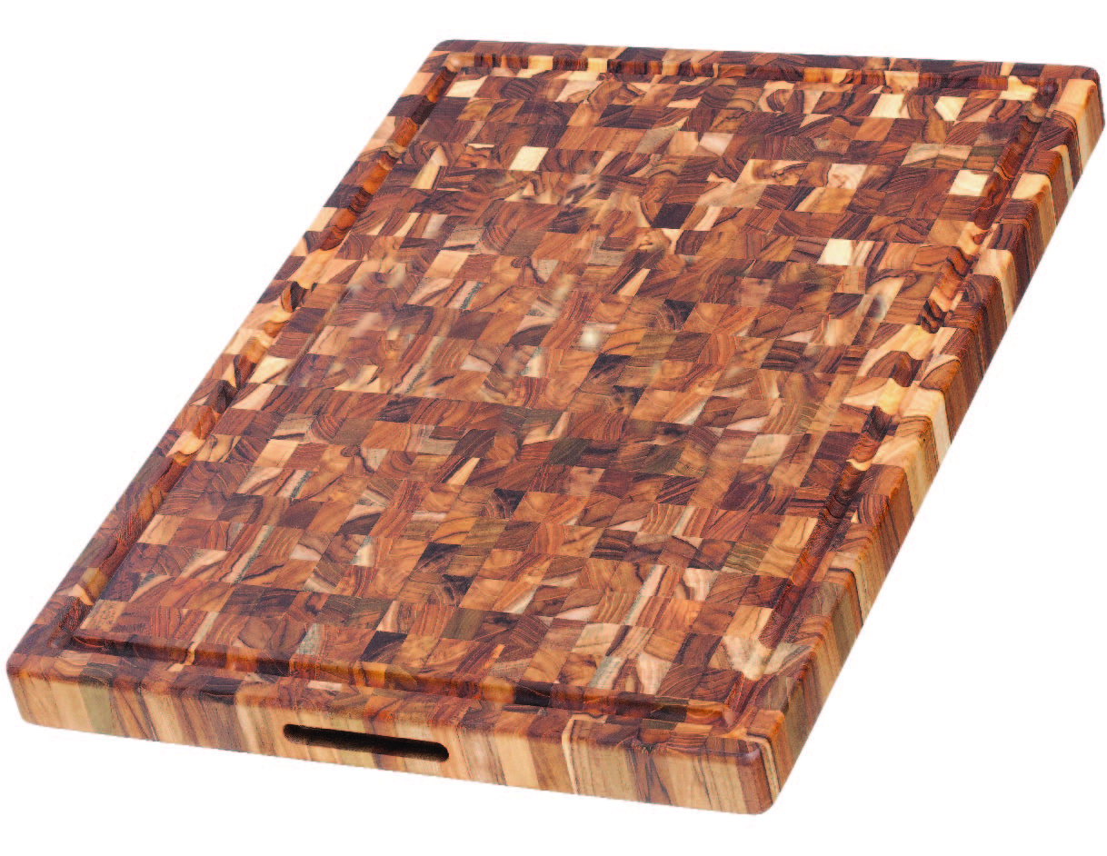BUTCHER BLOCK COLLECTION -Reversible Carving Board (XL). A piece of art in your kitchen! One of our favorite collections, the End Grain construction makes it a glorious expression of woodwork. It's thick and heavy for daily work in the kitchen, giving you that ideal smooth cut under your knife. It's a must-have for those who view cooking as an art form or for those who spend plenty of time in the kitchen. Rectangle, End Grain, Thick, Heavy Duty Cutting Board w/ Hand Grip & Juice Canal on One Side, Master Case of 2. 100% Sustainable teakwood. Handwash only, do not soak. FSC Certified Product. Our zero-waste production process helps to minimize our environmental impact. All our teakwood comes from sustainable forests. FSC-certified, which means every purchase helps preserve nature, support sustainable forestry, protect biodiversity, conserve forests, and support local communities. Made in Vietnam.