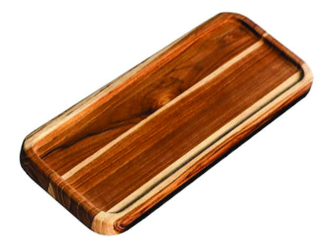 THE TRAY COLLECTION - Essential Serving Tray W/Narrow Rim (M). Whether you are serving appetizers or delivering breakfast in bed, our new tray collection will accomplish all your serving needs. Use them on the tabletop for serving or as part of a decorative piece in your living room. Master Case of 5. 100% Sustainable teakwood. Handwash only, do not soak. FSC Certified Product. Teak is a tropical wood with a high oil content that acts as a moisture-resistant barrier. Its medium hardness provides a luxurious cutting experience and keeps your knives sharp. For mainteining use just a few drops of mineral oil, your boards will look like new again. Our zero-waste production process helps to minimize our environmental impact. All our teakwood comes from sustainable forests. FSC-certified, which means every purchase helps preserve nature, support sustainable forestry, protect biodiversity, conserve forests, and support l