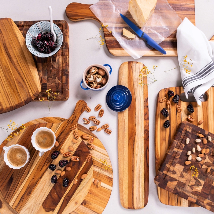 MARINE COLLECTION - Paddle Cutting/Serving Board (S). Sharing is caring! Our Marine Collection is designed for daily and special occasions. It's versatile, unique, and perfect for a cutting board, serving tray, or a gorgeous conversation piece in the garden. Rectangle, Edge Grain & Handle, Reversible, Master Case of 4. 100% Sustainable teakwood. Handwash only, do not soak. FSC Certified Product. Teak is a tropical wood with a high oil content that acts as a moisture-resistant barrier. Its medium hardness provides a luxurious cutting experience and keeps your knives sharp. For mainteining use just a few drops of mineral oil, your boards will look like new again. Our zero-waste production process helps to minimize our environmental impact. All our teakwood comes from sustainable forests. FSC-certified, which means every purchase helps preserve nature, support sustainable forestry, protect biodiversity, conserve fo