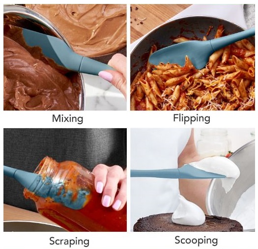 Offset head with shallow bowl is perfect for all your scooping needs. An angled head ensures food stays in the spoon while scooping. Shallow bowl. Nylon Core for added rigidity. Ergonomically shaped handle for a comfortable grip. Perfect for mixing, folding, serving, and scooping. Made of BPA-free silicone and nylon.