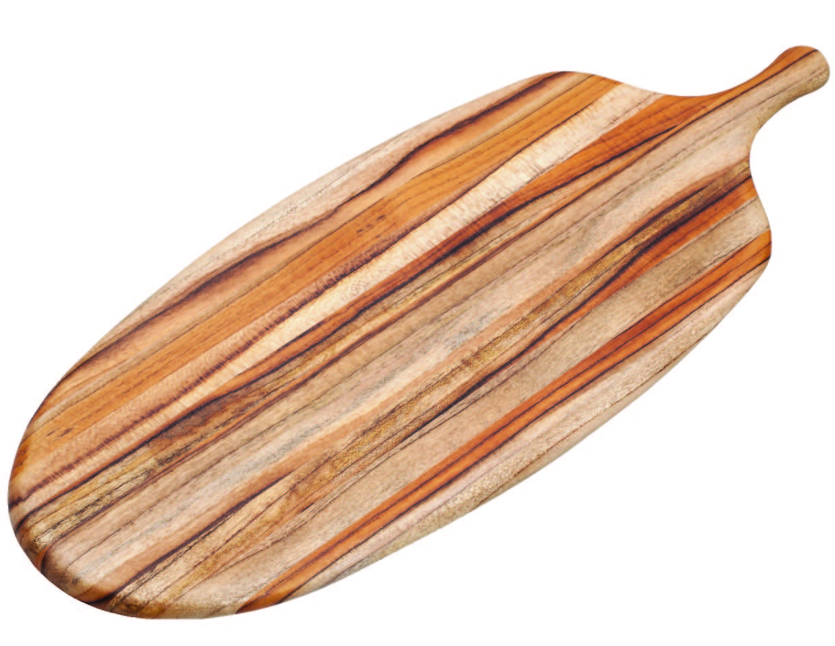 CANOE COLLECTION - Long Paddle Serving Board. This piece is a warm invitation to welcome conversations. Envision a dessert board, appetizers or tapas to enjoy any special occasion in the comfort of your home featuring our long and sleek paddle serving board. Edge Grain, Thin Paddle Shaped, Reversible, Master Case of 4. 100% Sustainable teakwood. Handwash only, do not soak. FSC Certified Product. Teak is a tropical wood with a high oil content that acts as a moisture-resistant barrier. Its medium hardness provides a luxurious cutting experience and keeps your knives sharp. For mainteining use just a few drops of mineral oil, your boards will look like new again. Our zero-waste production process helps to minimize our environmental impact. All our teakwood comes from sustainable forests. FSC-certified, which means every purchase helps preserve nature, support sustainable forestry, protect biodiversity, conserve for