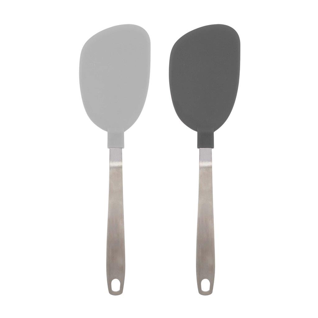 Safe for non-stick pans. Wide surface great for flipping. Made of stainless steel and BPA-free nylon. .